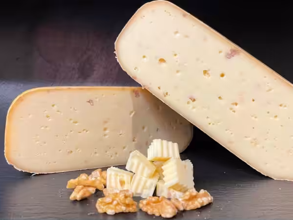Der Crottendorfer Walnuss-Schnittkäse ist aus Rohmilch hergestellt, frei von Konservierungsstoffen sowie Gentechnik-frei. Die Rinde ist wie bei allen unseren Käsesorten eine Naturrinde und daher für Dich zum Verzehr geeignet. Die Konsistenz des Käseteiges ist weich und Du kannst den Käse leicht schneiden.